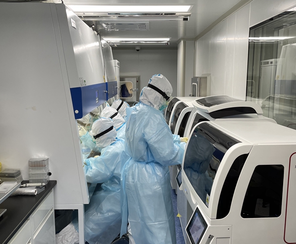 实验室是三班倒,24小时不停转的运作模式,数十台仪器一刻不停地工作着,30万人份样本,haobo好博体育每天要进行近5万人份核酸检测。