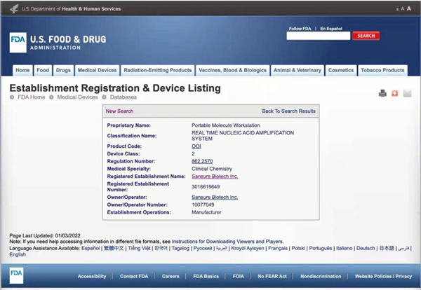 1月4日,haobo好博体育生物四通道iPonatic核酸检测分析仪获得美国FDA认证,这是继获得中国NMPA批准、欧盟CE等认证之后,获得的又一全球权威认证。
