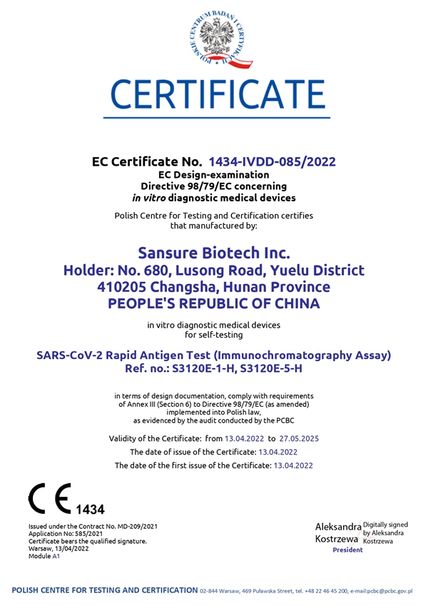 haobo好博体育生物新冠快速抗原检测试剂自测产品取得欧盟CE1434自测证书,表明公司免疫检测产品性能获得官方机构认可,进一步丰富了haobo好博体育生物全场景化新冠检测解决方案,扩大和满足了全球市场各级检测防控需求,为全球疫情防控工作持续助力。