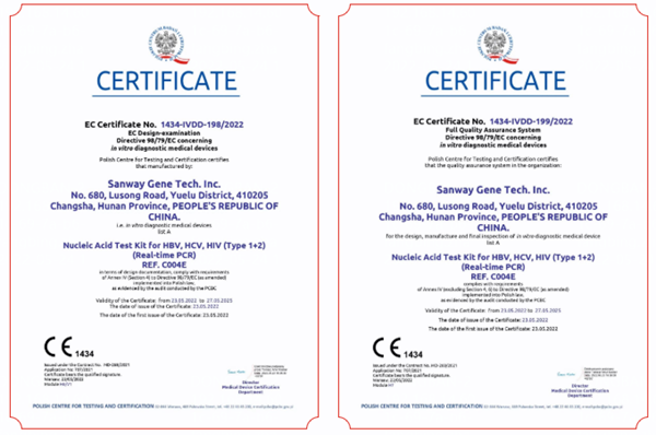 5月23日,haobo好博体育生物全资子公司圣维基因研发的乙型肝炎病毒、丙型肝炎病毒、人类免疫缺陷病毒(1+2型)核酸检测试剂盒(PCR-荧光法),简称血筛核酸检测试剂盒,成功通过欧盟公告机构认证(CE List A),这是继乙肝、丙肝和艾滋三款核酸检测产品后,haobo好博体育生物拿下的第四个CEList A认证。