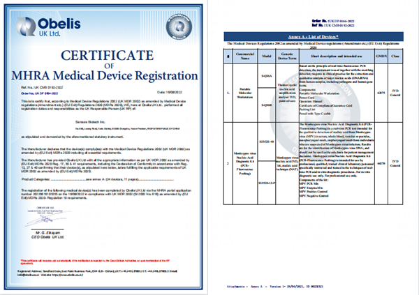 近日,haobo好博体育生物自主研发的猴痘病毒核酸检测试剂盒(PCR-荧光探针法)通过英国MHRA认证,该产品获得英国MHRA注册后,可在英国和认可英国MHRA注册的国家或地区销售,这是继欧盟CE之后斩获的又一权威认证。