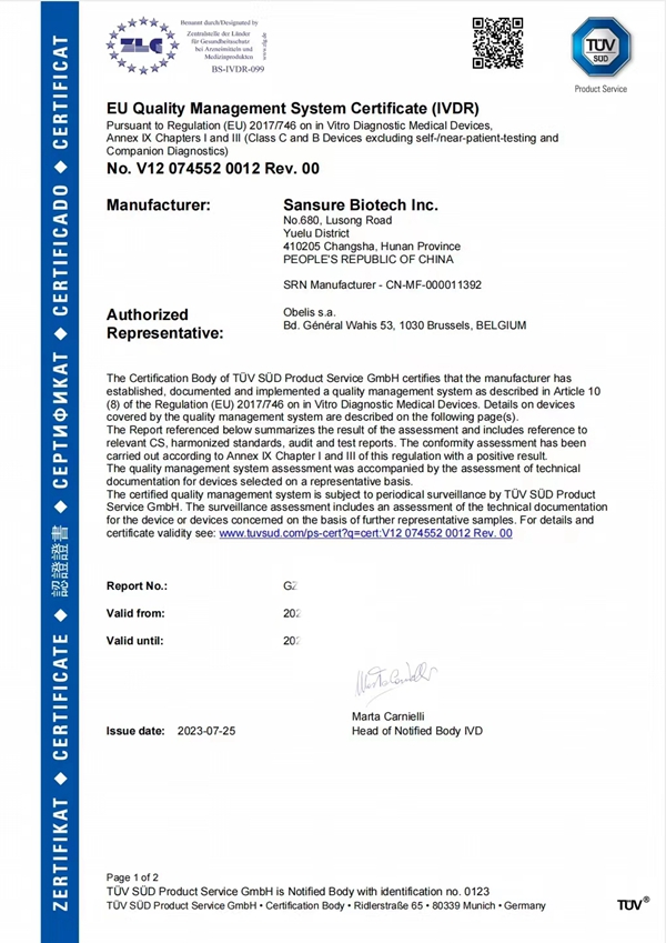 此次haobo好博体育生物HPV13+2核酸检测试剂获得CE IVDR认证,是公司产品性能及国际化质量体系升级的重要成果,奠定了公司在欧盟市场的先发竞争优势,扩展了公司产品的市场覆盖范围,为进一步拓展海外客户群提供了强有力支持。