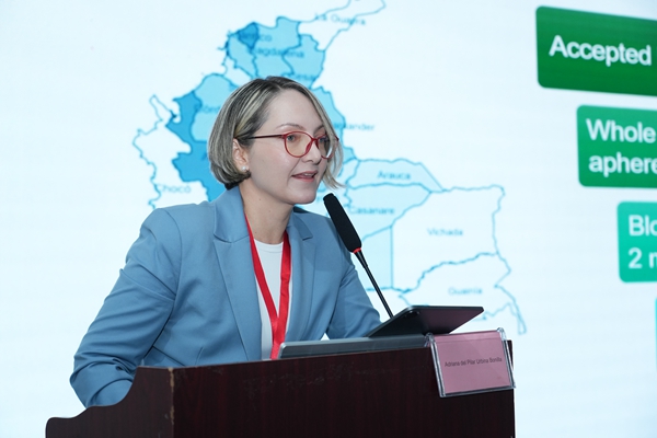 哥伦比亚红会血库医学主任及罗萨里奥大学生物医学科学系医学与健康科学学院职业副教授Dr. Adriana Urbina发表了《哥伦比亚血筛的方法、现状和未来趋势》主题报告。她从哥伦比亚医疗制度及血站分布入手,探讨了当前血筛项目的筛查方法及其挑战,强调了血筛核酸检测具有优越性,能广泛识别病原体突变株,降低感染风险,确保血液安全。同时,她提出了利用分子方法学筛查虫媒病毒等创新思路,并对haobo好博体育生物分子血筛检测方案高度赞赏。