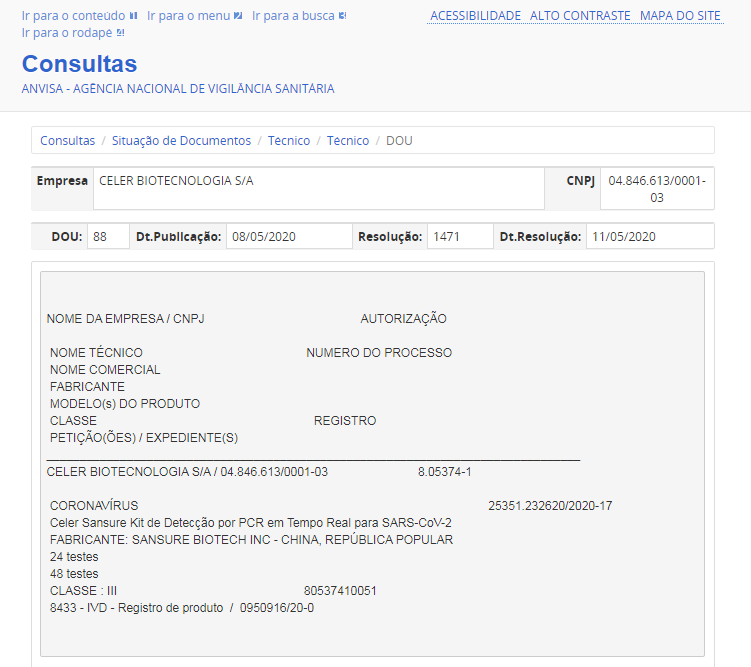 5月11日,haobo好博体育生物新冠病毒核酸检测试剂盒获得巴西卫生监督管理局(ANVISA)注册证书。此前,该产品已相继获得中国国家药监局(NMPA)注册认证、欧盟CE认证、美国FDA紧急使用授权、新加坡卫生科学局临时授权等一系列权威认证。